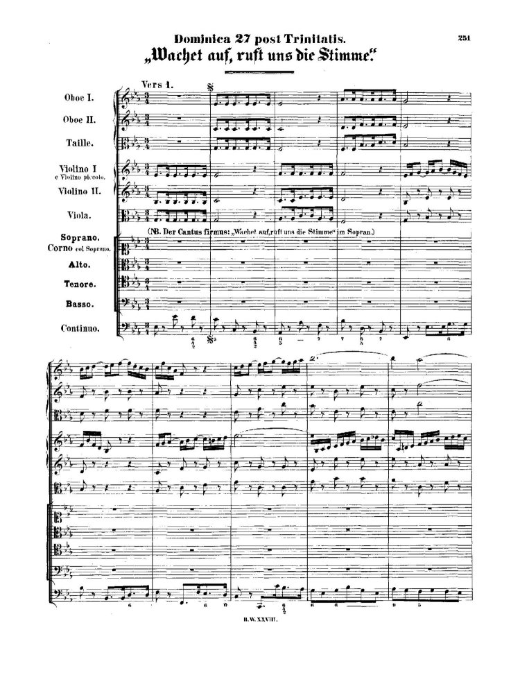 | Chorus Wachet Auf (Mvt. 1) from Cantata BWV 140 (1731) (verse 1) |