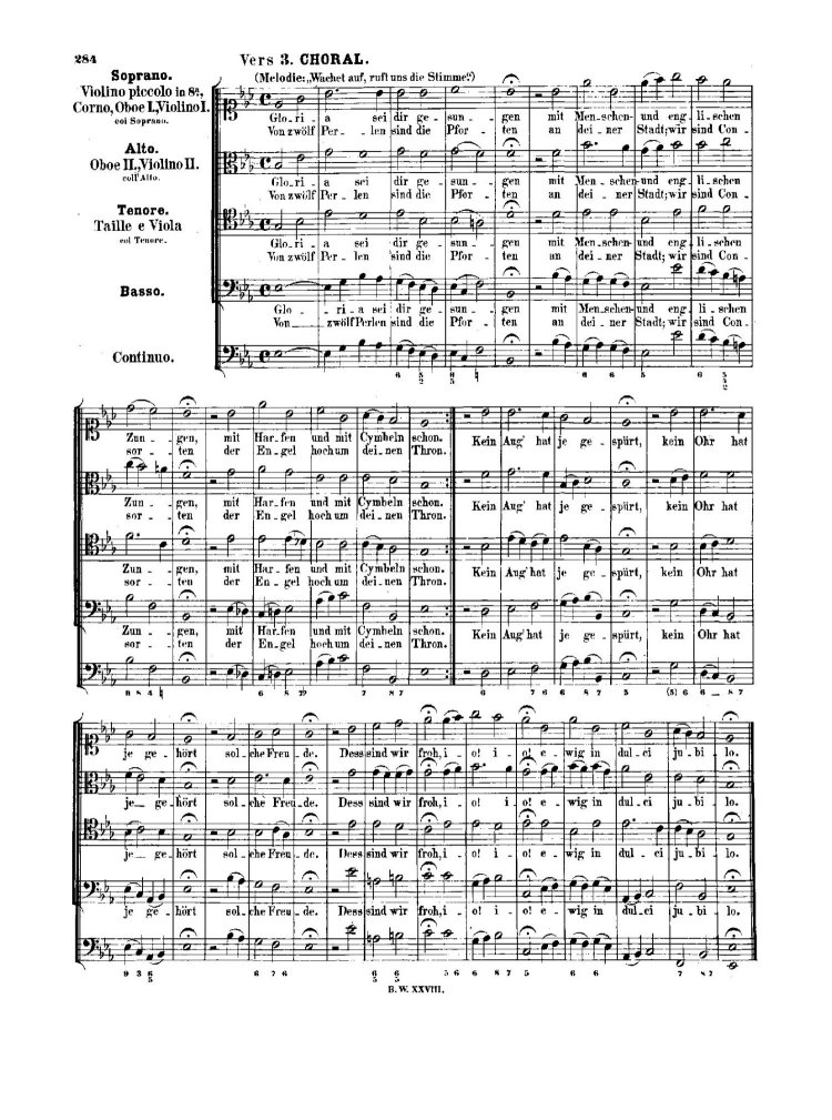 | Chorale Zion hört die Wächter singen (Mvt. 4) from Cantata BWV 140 (1731) (verse 2) |