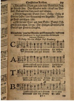 | Melody & text of Wachet auf, ruft uns die Stimme (NLGB 315) from the Neu Leipziger Gesangbuch (1682), pp 819-822 |